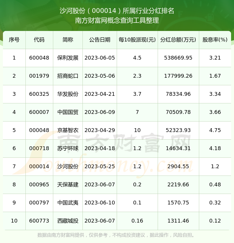 、沙河股份000014行業(yè)分紅排名