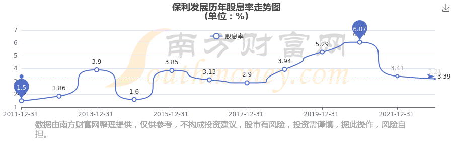 近年保利發(fā)展年度股息率走勢(shì)如下圖: