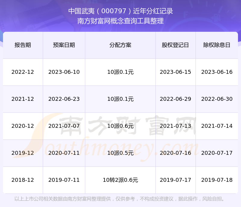 中國武夷最新一次公布的分紅方案:10派0.1元。
