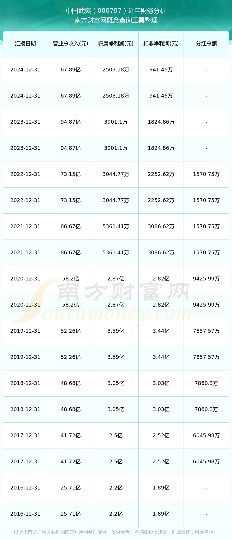 近年中國武夷分紅派息情況如下表所示: