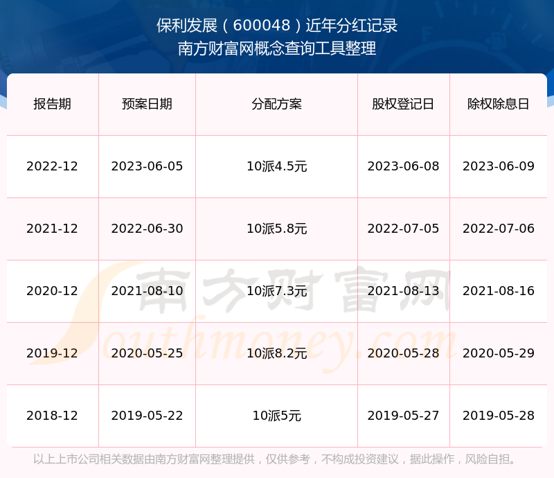 保利發(fā)展最新一次公布的分紅方案:10派4.5元。
