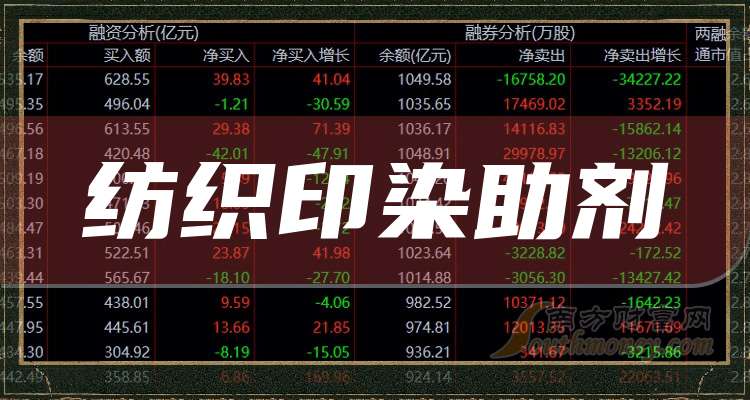 據(jù)南方財(cái)富網(wǎng)概念查詢工具數(shù)據(jù)顯示,紡織印染助劑題材有: