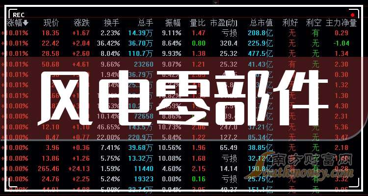 據(jù)南方財富網(wǎng)概念查詢工具數(shù)據(jù)顯示,風(fēng)電零部件題材公司有: