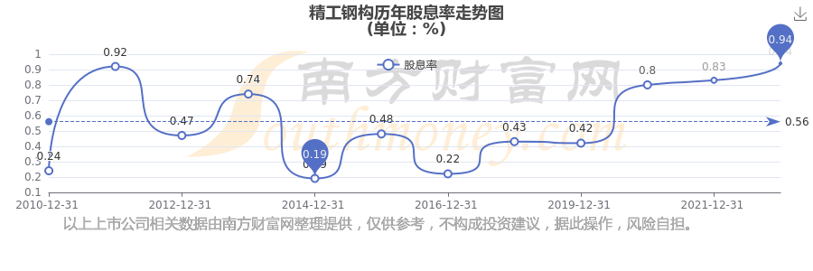 近年精工鋼構(gòu)年度股息率走勢(shì)如下圖: