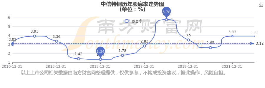 中信特鋼歷年股息率走勢(shì)如下圖: