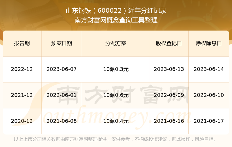 山東鋼鐵最新一次公布的分紅方案:10派0.3元。