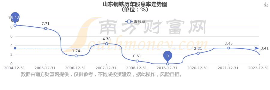 山東鋼鐵歷年股息率走勢(shì)如下圖: