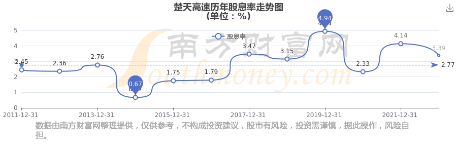 楚天高速最新一次公布的分紅方案為10派1.4元。本次權(quán)益分派股權(quán)登記日為2023年6月15日,除權(quán)除息日為2023年6月16日,派息日為2023年6月16日。