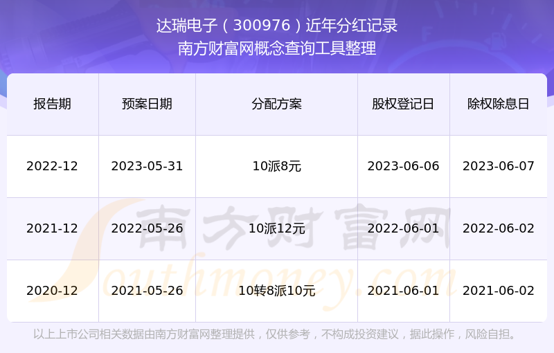 近年達(dá)瑞電子分紅派息情況如下表所示: