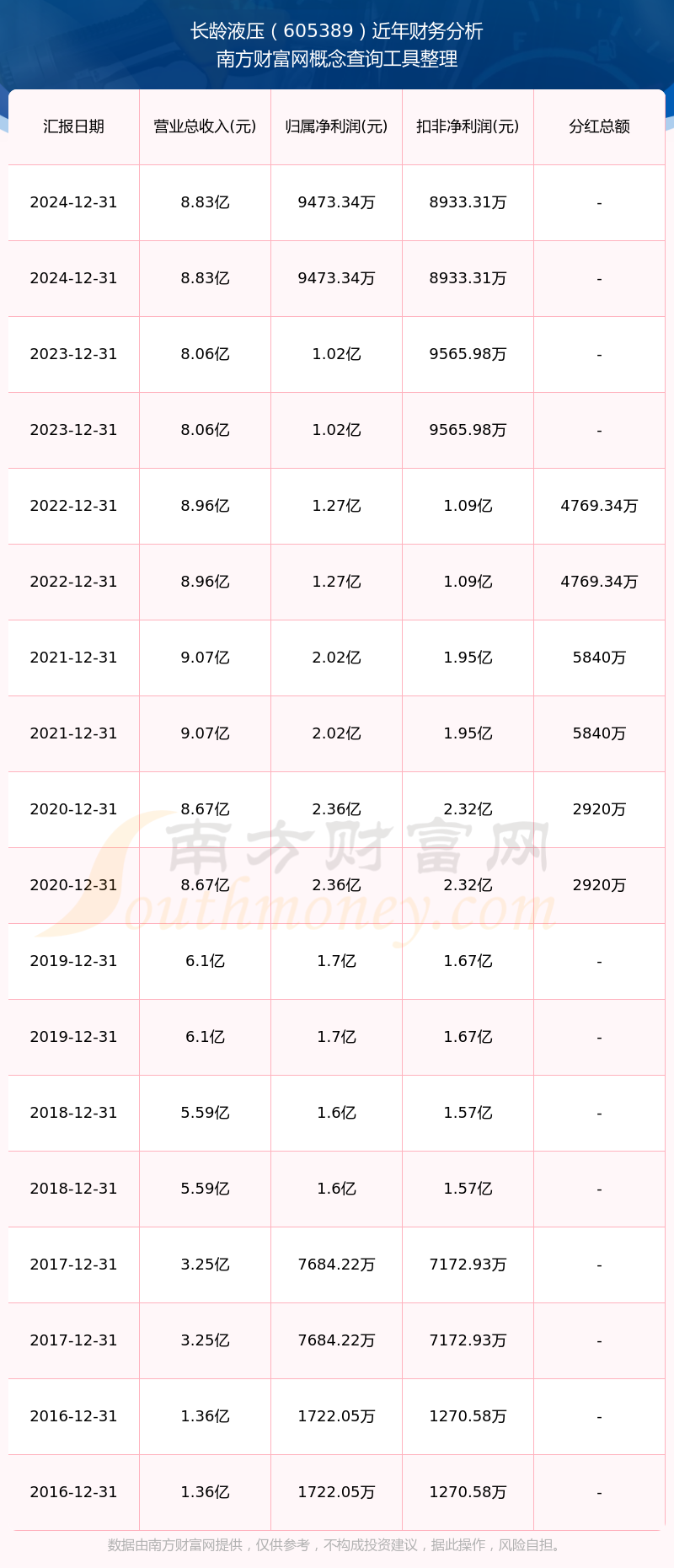2024年長齡液壓總營收8.83億,同比增長9.57%;凈利潤9473.34萬,同比增長-6.84%;銷售毛利率25.4%。