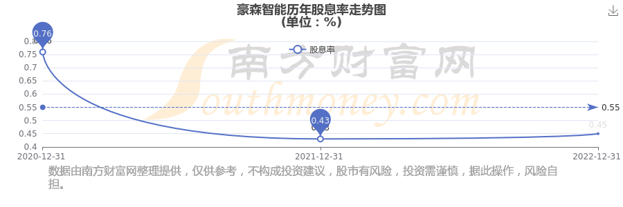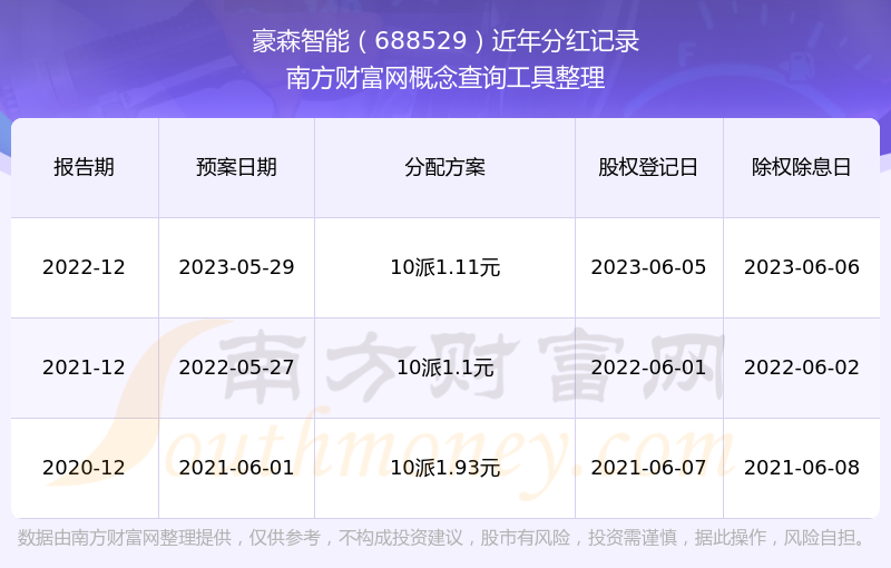 豪森智能最新一次公布的分紅方案:10派1.11元。