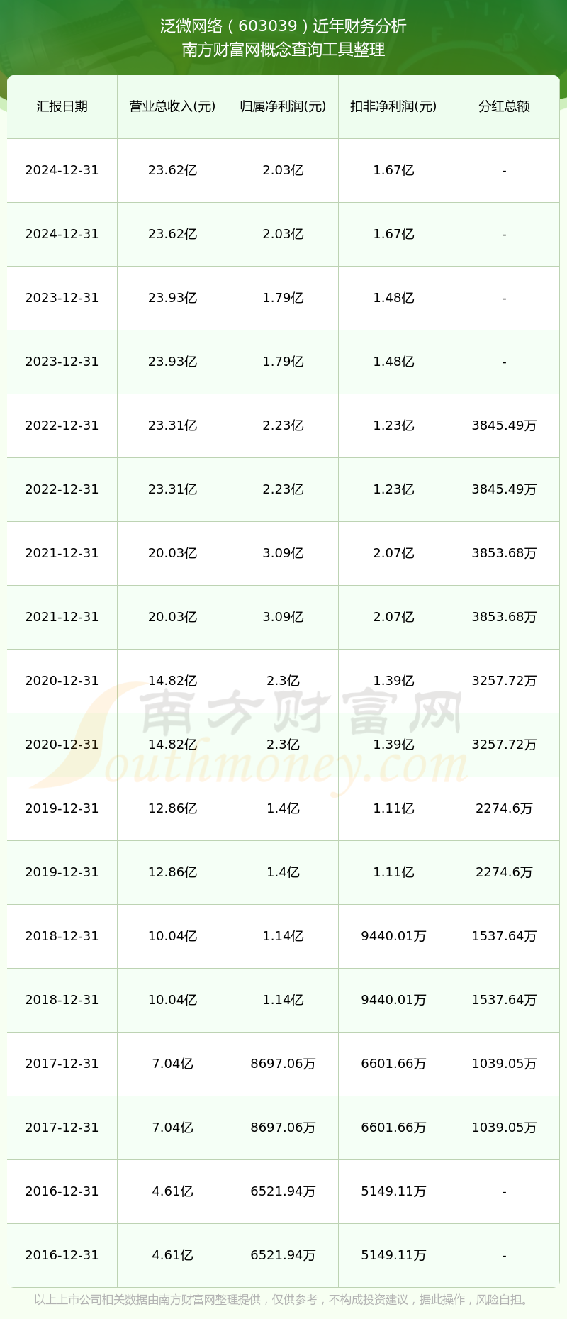 近年泛微網(wǎng)絡分紅派息情況如下表所示: