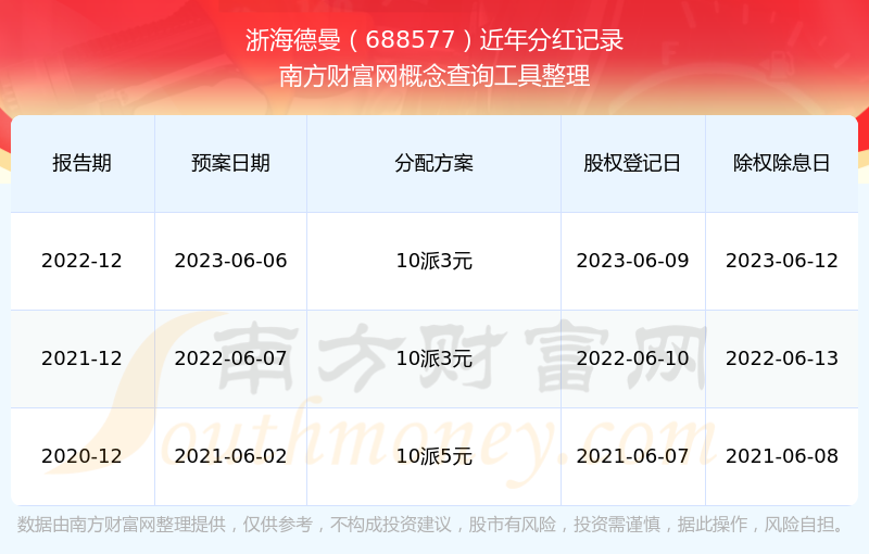 浙海德曼最新一次公布的分紅方案:10派3元。
