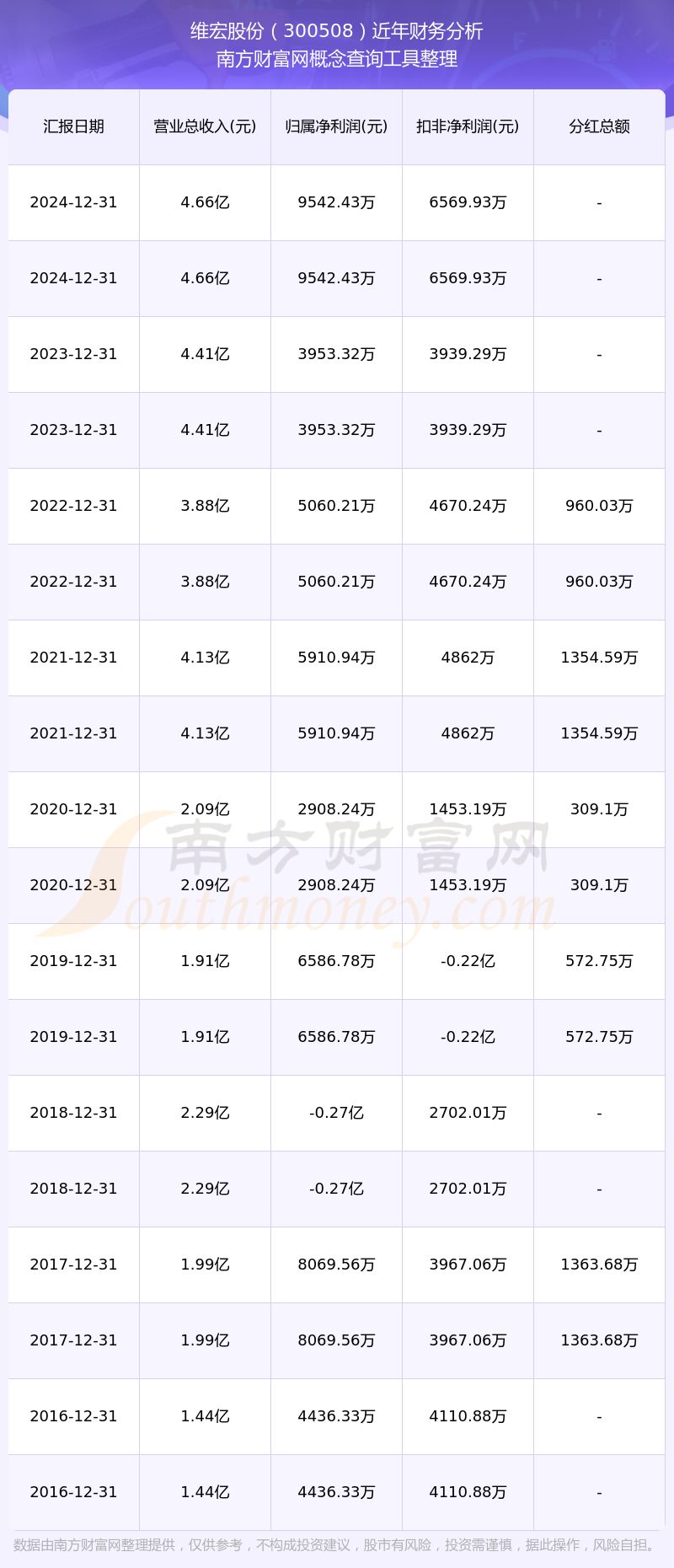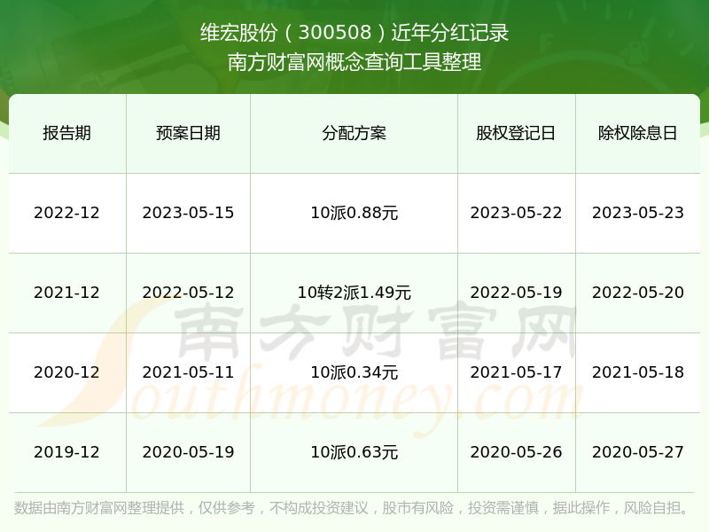 近年維宏股份分紅派息情況如下表所示: