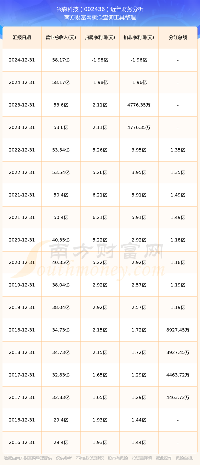 2024年報(bào)顯示,興森科技實(shí)現(xiàn)營收58.17億,同比增長(zhǎng)8.53%;凈利潤-1.98億,同比增長(zhǎng)-193.88%;毛利率15.87%。