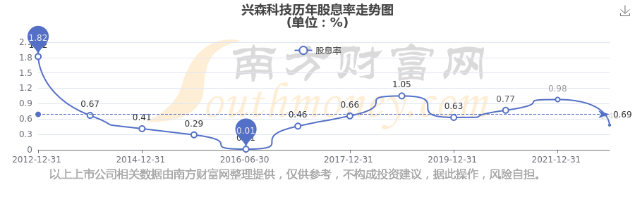 興森科技?xì)v年股息率走勢(shì)如下圖: