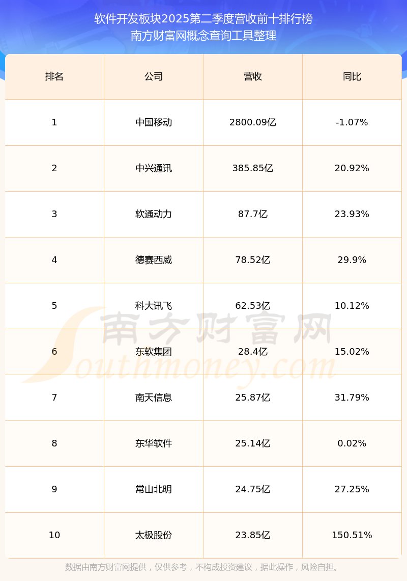 按照南方財富網概念查詢工具統(tǒng)計,該股所屬板塊為軟件開發(fā)板塊,該板塊共有196只股票,中望軟件2025第二季度營收在該板塊中排名為第102名,該板塊2025第二季度營收排名前十的股票如下表: