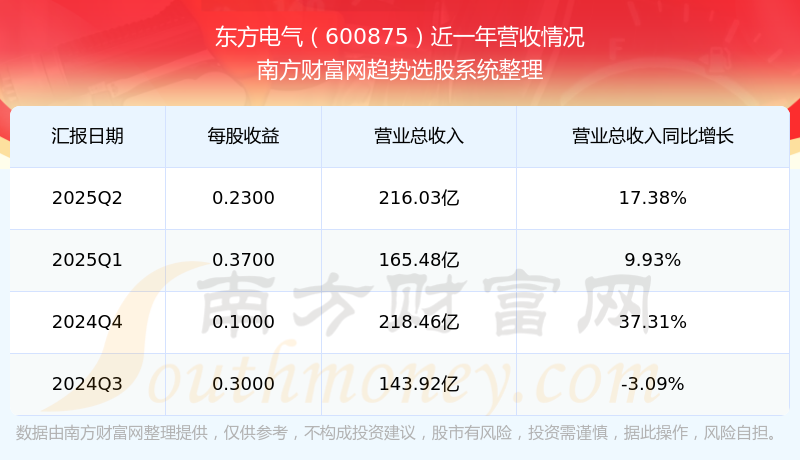 東方電氣2025年第二季度報(bào)告顯示,公司實(shí)現(xiàn)主營(yíng)業(yè)務(wù)收入216.03億元,較去年同期增長(zhǎng)17.38%;歸屬于母公司股東的凈利潤(rùn)為7.56億元,同比增長(zhǎng)-3.79%;扣除非經(jīng)常性損益后的凈利潤(rùn)為7.48億元,同比增長(zhǎng)29.32%。