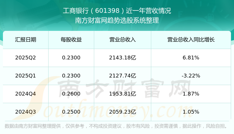 2025年第二季度,工商銀行營收同比6.81%,凈利潤同比1.37%。