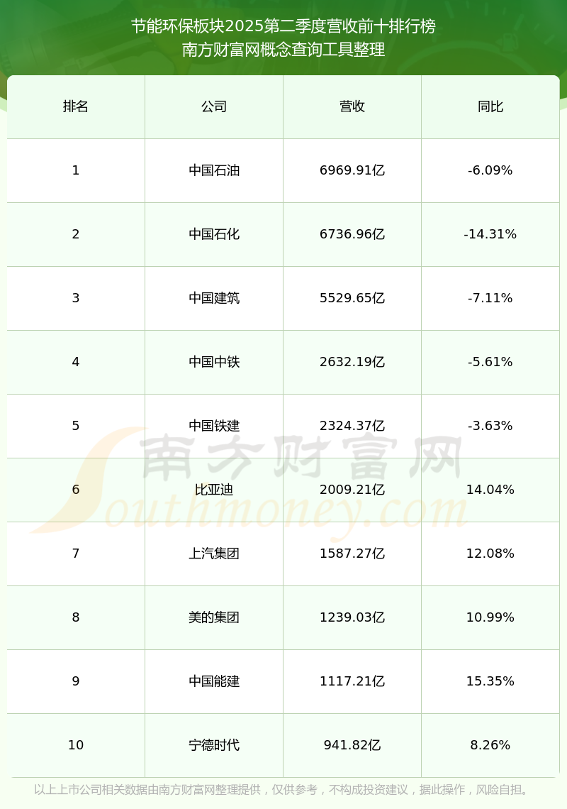 按照南方財(cái)富網(wǎng)概念查詢工具統(tǒng)計(jì),該股所屬板塊為節(jié)能環(huán)保板塊,該板塊共有622只股票,瀚藍(lán)環(huán)境2025第二季度營收在該板塊中排名為第101名,該板塊2025第二季度營收排名前十的股票如下表: