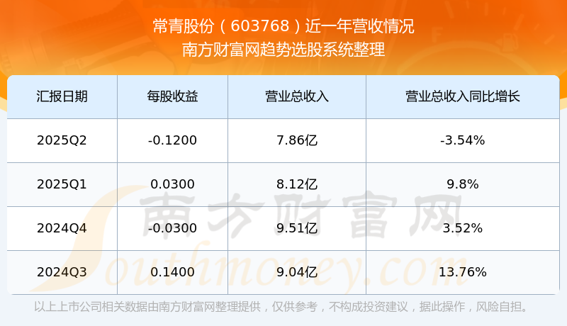 常青股份2025年第二季度財(cái)報(bào)顯示,公司主營(yíng)收入7.86億元,同比-3.54%;歸母凈利潤(rùn)-2665.8萬(wàn)元,同比-565.56%;扣非凈利潤(rùn)-2727.95萬(wàn)元,同比-5950.67%;