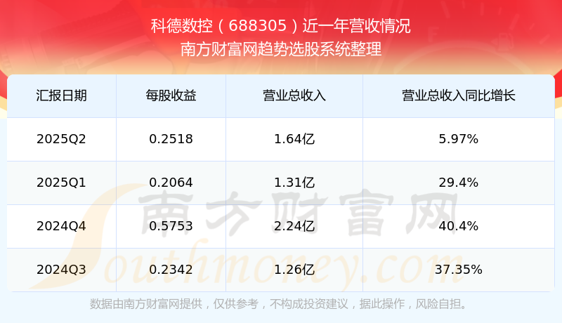 按照南方財(cái)富網(wǎng)概念查詢工具統(tǒng)計(jì),該股所屬板塊為數(shù)控機(jī)床板塊,該板塊共有79只股票,科德數(shù)控2025第二季度營(yíng)收在該板塊中排名為第65名,該板塊2025第二季度營(yíng)收排名前十的股票如下表: