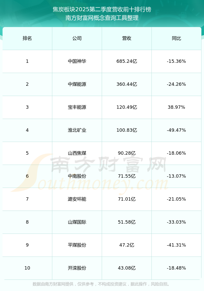 按照南方財(cái)富網(wǎng)概念查詢工具統(tǒng)計(jì),該股所屬板塊為焦炭板塊,該板塊共有22只股票,山西焦化2025第二季度營(yíng)收在該板塊中排名為第15名,該板塊2025第二季度營(yíng)收排名前十的股票如下表: