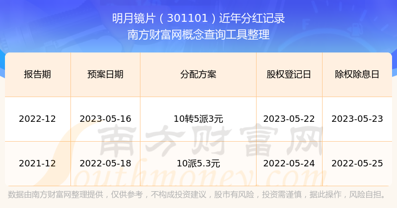 明月鏡片最新一次公布的分紅方案:10轉(zhuǎn)5派3元。