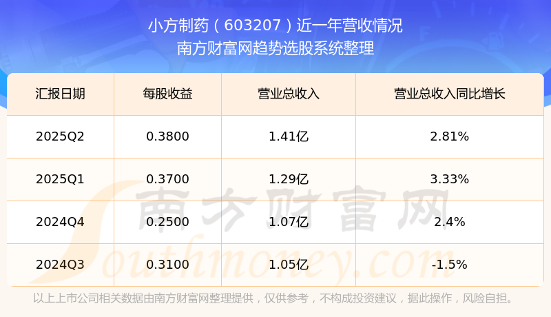 小方制藥發(fā)布2025年第二季度財報。實現(xiàn)總營收1.41億元,同比增長2.81%;扣非凈利潤同比增長-7.81%至6137.88萬元。