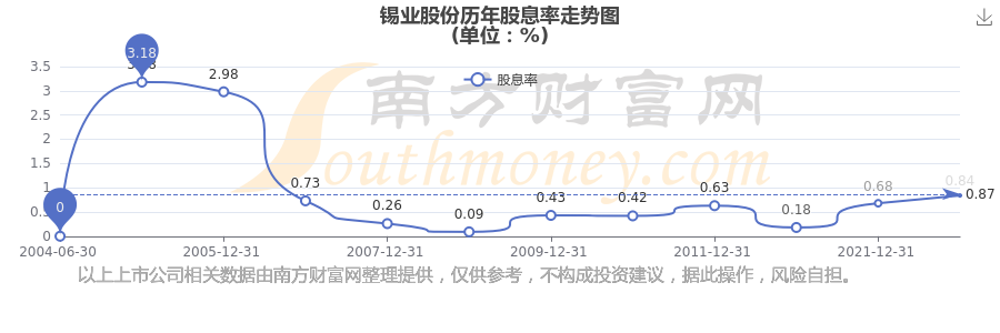 近年錫業(yè)股份年度股息率走勢如下圖: