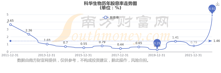 近年科華生物年度股息率走勢(shì)如下圖: