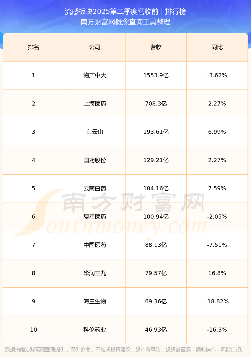 按照南方財(cái)富網(wǎng)概念查詢工具統(tǒng)計(jì),該股所屬板塊為流感板塊,該板塊共有147只股票,國藥股份2025第二季度營收在該板塊中排名為第4名,該板塊2025第二季度營收排名前十的股票如下表: