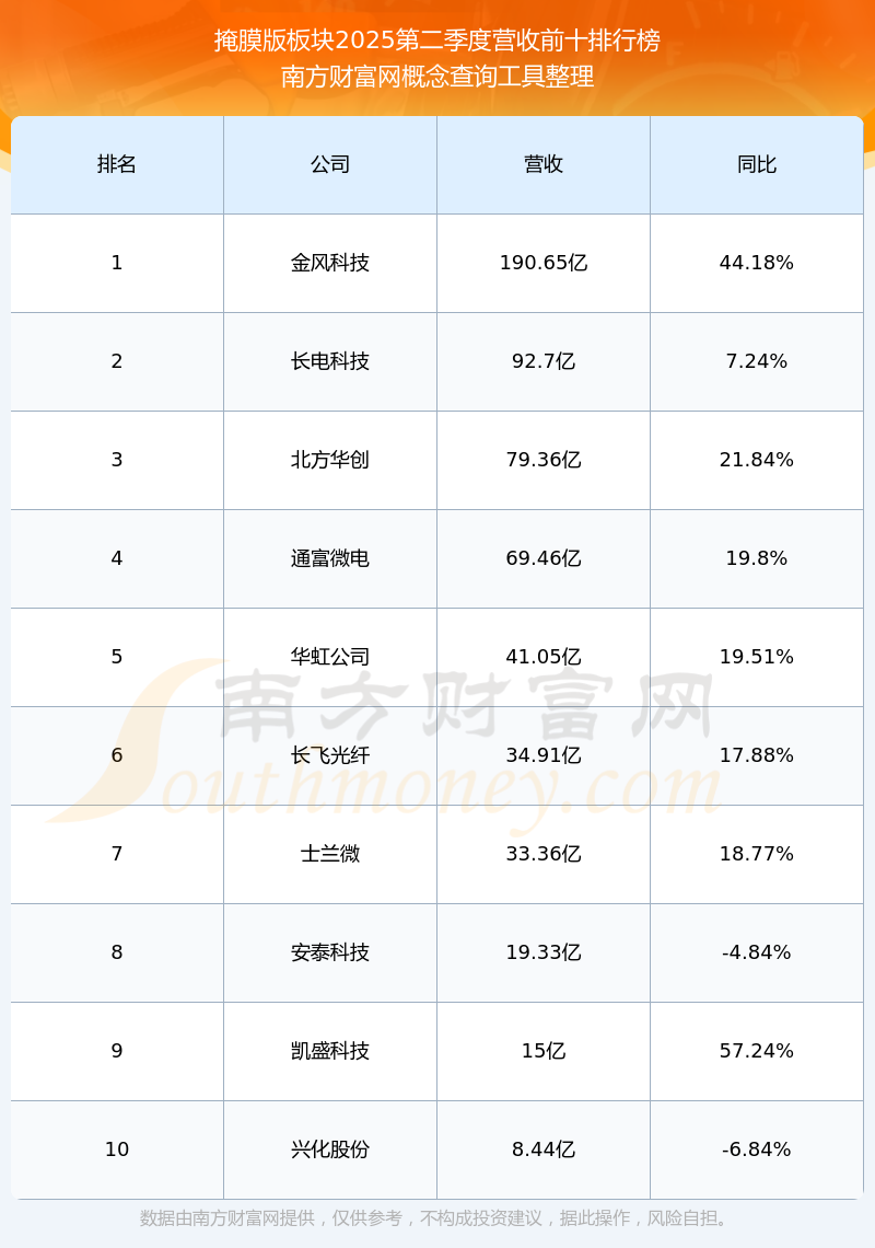 按照南方財(cái)富網(wǎng)概念查詢工具統(tǒng)計(jì),該股所屬板塊為掩膜版板塊,該板塊共有26只股票,路維光電2025第二季度營(yíng)收在該板塊中排名為第19名,該板塊2025第二季度營(yíng)收排名前十的股票如下表: