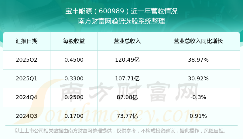 在2025年第二季度,寶豐能源的業(yè)績表現(xiàn),主營業(yè)務(wù)收入達(dá)到120.49億元,實(shí)現(xiàn)了38.97%的同比增長率。同時(shí),公司歸母凈利潤錄得32.81億元,同比增長74.17%。