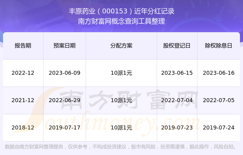 一、豐原藥業(yè)(000153)股票分紅記錄