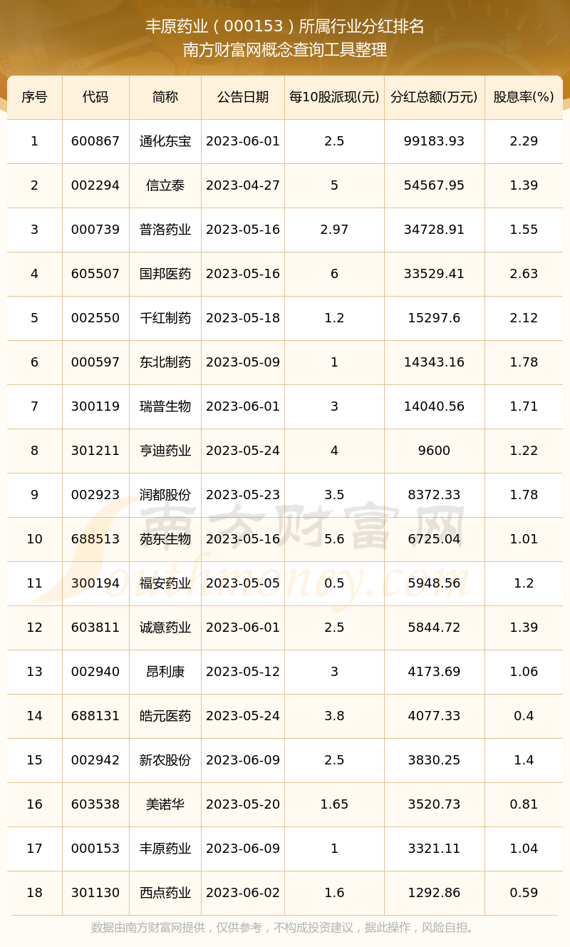 二、豐原藥業(yè)000153行業(yè)分紅排名