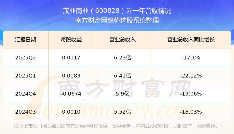 按照南方財(cái)富網(wǎng)概念查詢工具統(tǒng)計(jì),該股所屬板塊為商業(yè)百貨板塊,該板塊共有75只股票,茂業(yè)商業(yè)2025第二季度營(yíng)收在該板塊中排名為第39名,該板塊2025第二季度營(yíng)收排名前十的股票如下表: