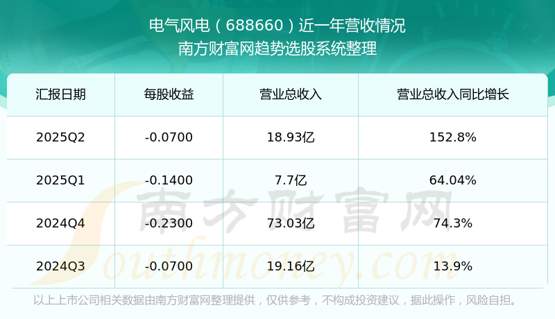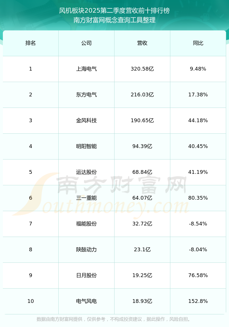 按照南方財富網(wǎng)概念查詢工具統(tǒng)計,該股所屬板塊為風機板塊,該板塊共有26只股票,電氣風電2025第二季度營收在該板塊中排名為第10名,該板塊2025第二季度營收排名前十的股票如下表: