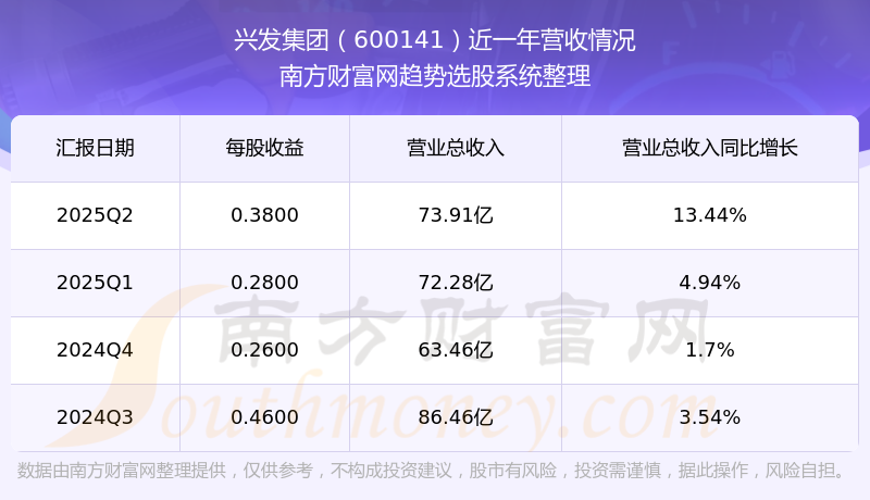 財(cái)報(bào)顯示,2025年第二季度興發(fā)集團(tuán)營收73.91億元,同比增長13.44%,凈利潤4.16億元,同比增長-1.72%。