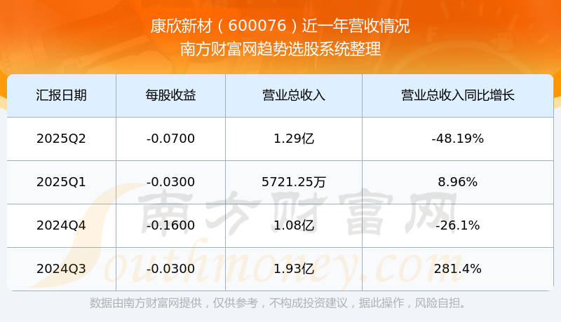 按照南方財(cái)富網(wǎng)概念查詢工具統(tǒng)計(jì),該股所屬板塊為裝修建材板塊,該板塊共有82只股票,康欣新材2025第二季度營收在該板塊中排名為第82名,該板塊2025第二季度營收排名前十的股票如下表: