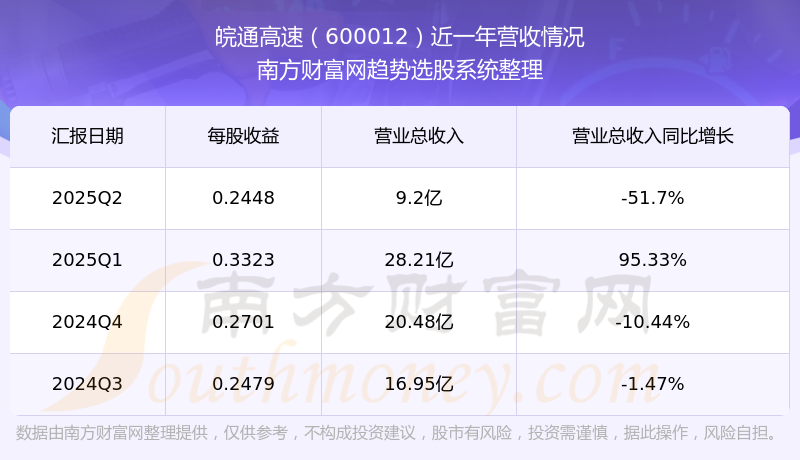一、皖通高速(600012)股票營收情況