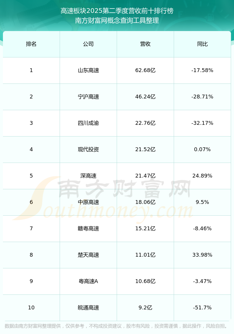 按照南方財(cái)富網(wǎng)概念查詢工具統(tǒng)計(jì),該股所屬板塊為高速板塊,該板塊共有15只股票,皖通高速2025第二季度營收在該板塊中排名為第10名,該板塊2025第二季度營收排名前十的股票如下表: