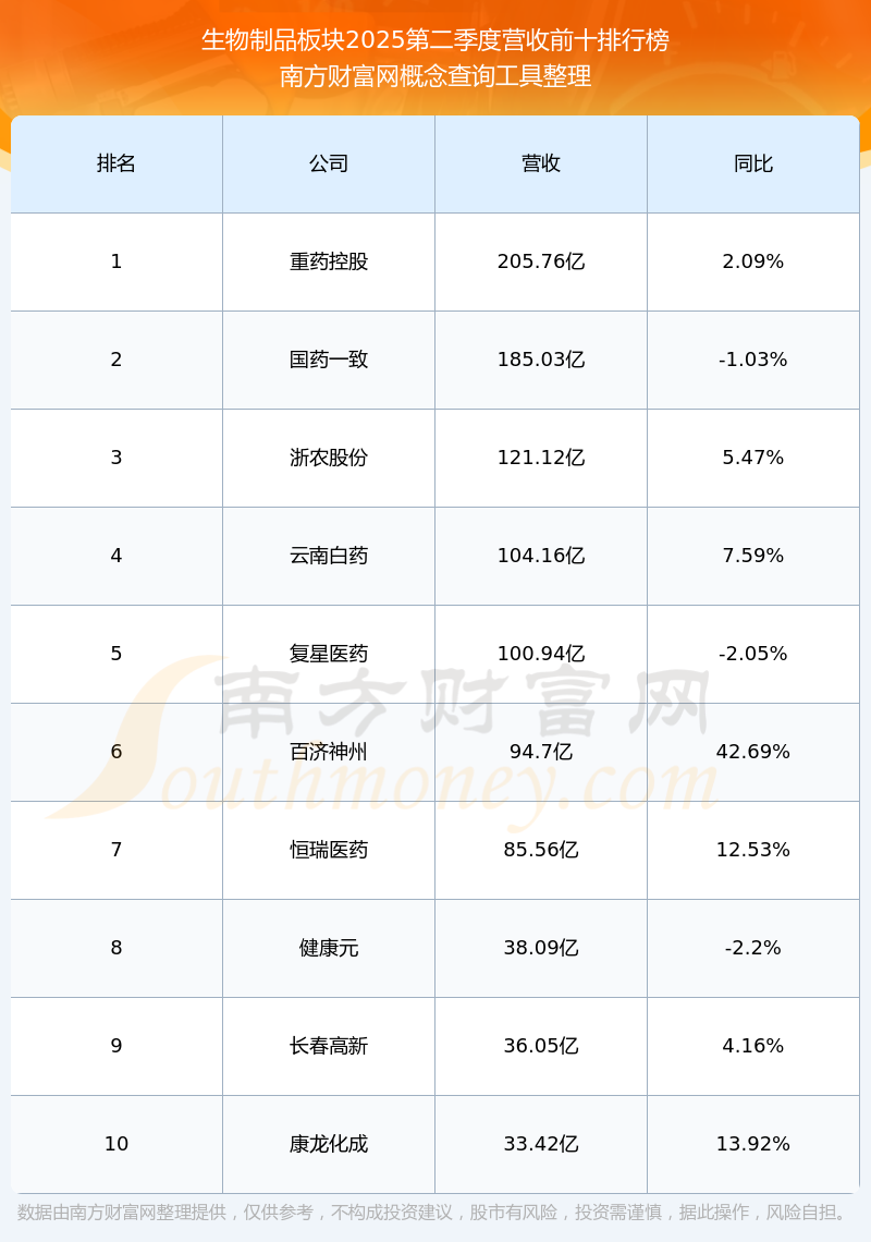 按照南方財富網(wǎng)概念查詢工具統(tǒng)計,該股所屬板塊為生物制品板塊,該板塊共有148只股票,甘李藥業(yè)2025第二季度營收在該板塊中排名為第26名,該板塊2025第二季度營收排名前十的股票如下表: