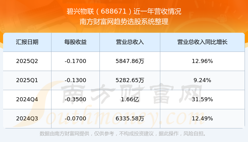 2025年第二季度,碧興物聯(lián)營收同比12.96%,凈利潤同比-231.93%。