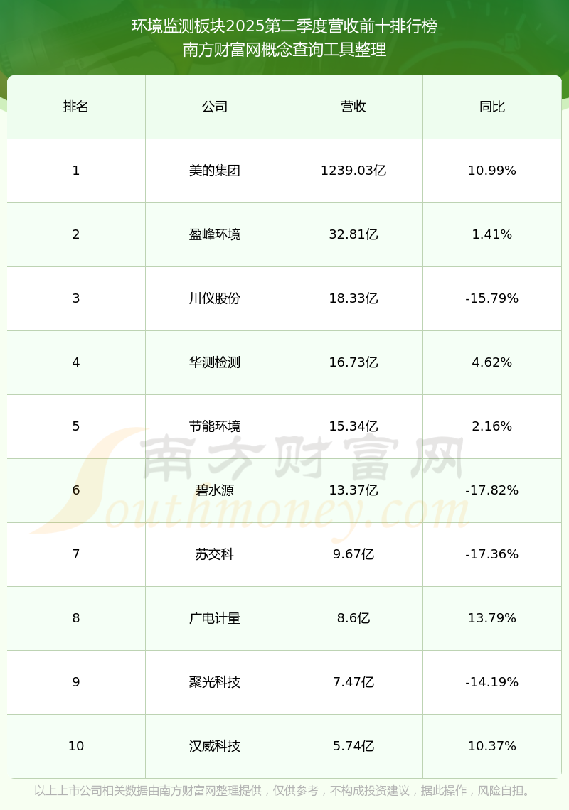 按照南方財富網(wǎng)概念查詢工具統(tǒng)計,該股所屬板塊為環(huán)境監(jiān)測板塊,該板塊共有34只股票,碧興物聯(lián)2025第二季度營收在該板塊中排名為第32名,該板塊2025第二季度營收排名前十的股票如下表: