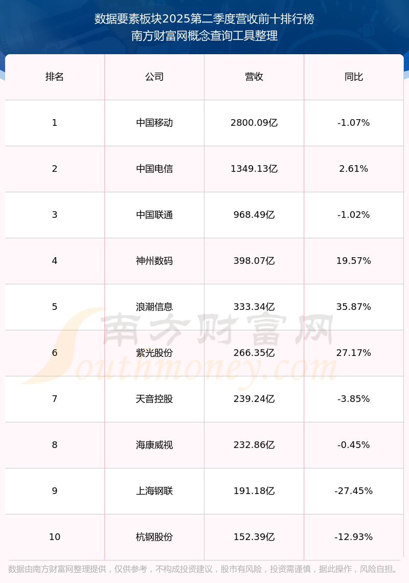 按照南方財富網(wǎng)概念查詢工具統(tǒng)計,該股所屬板塊為數(shù)據(jù)要素板塊,該板塊共有357只股票,合合信息2025第二季度營收在該板塊中排名為第141名,該板塊2025第二季度營收排名前十的股票如下表: