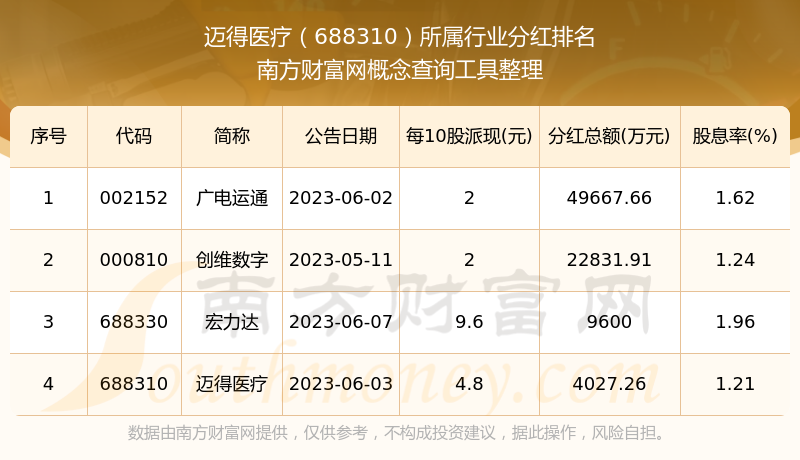 二、邁得醫(yī)療688310行業(yè)分紅排名