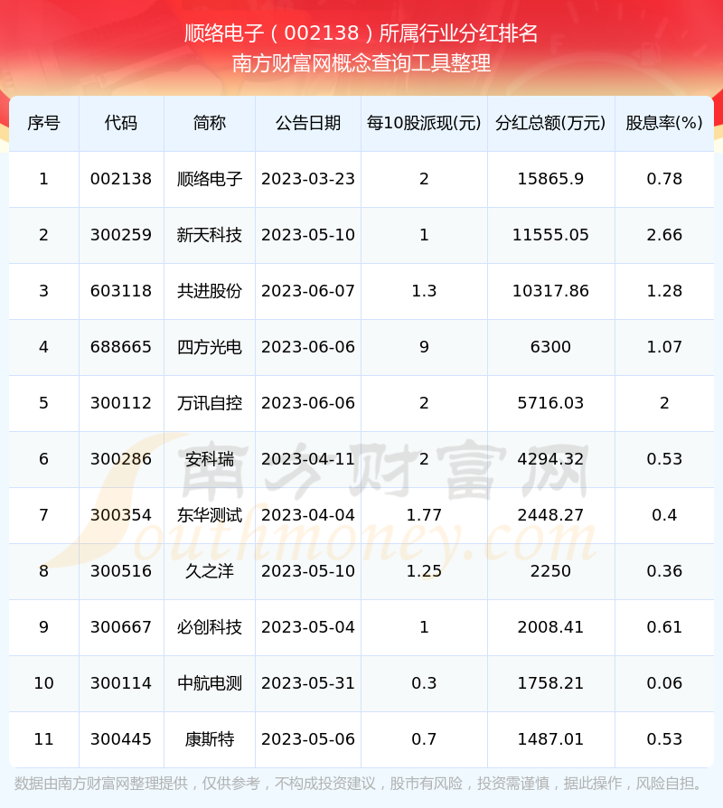 二、順絡(luò)電子002138行業(yè)分紅排名