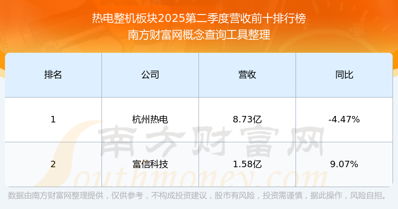 按照南方財(cái)富網(wǎng)概念查詢(xún)工具統(tǒng)計(jì),該股所屬板塊為熱電整機(jī)板塊,該板塊共有2只股票,富信科技2025第二季度營(yíng)收在該板塊中排名為第2名,該板塊2025第二季度營(yíng)收排名前十的股票如下表: