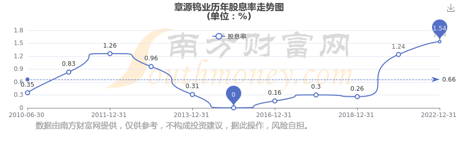 近年章源鎢業(yè)年度股息率走勢如下圖: